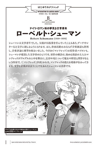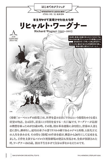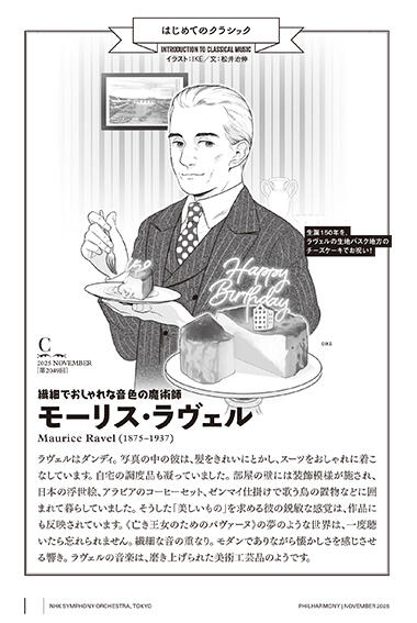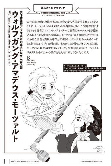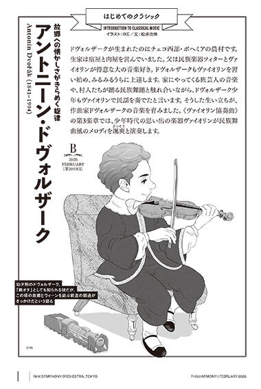 定期公演会場で配布する冊子『フィルハーモニー』で2023年9月より、A・B・C各プログラムの曲目をさらに一歩深く味わうためのTips、「はじめてのクラシック」のコーナーを開始しました。IKEさん書き下ろしのイラストとともにホームページでもお楽しみください。