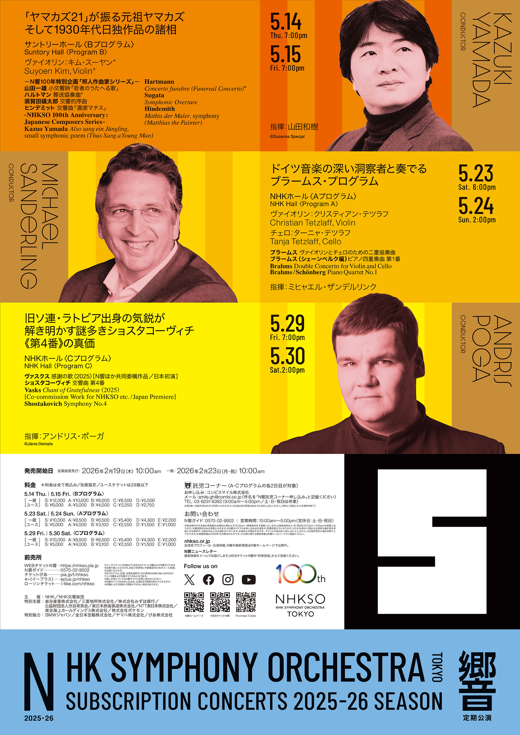 *Subscribers receive a 10% discount (Available at NHKSO WEB Ticket and N-Kyo Guide)