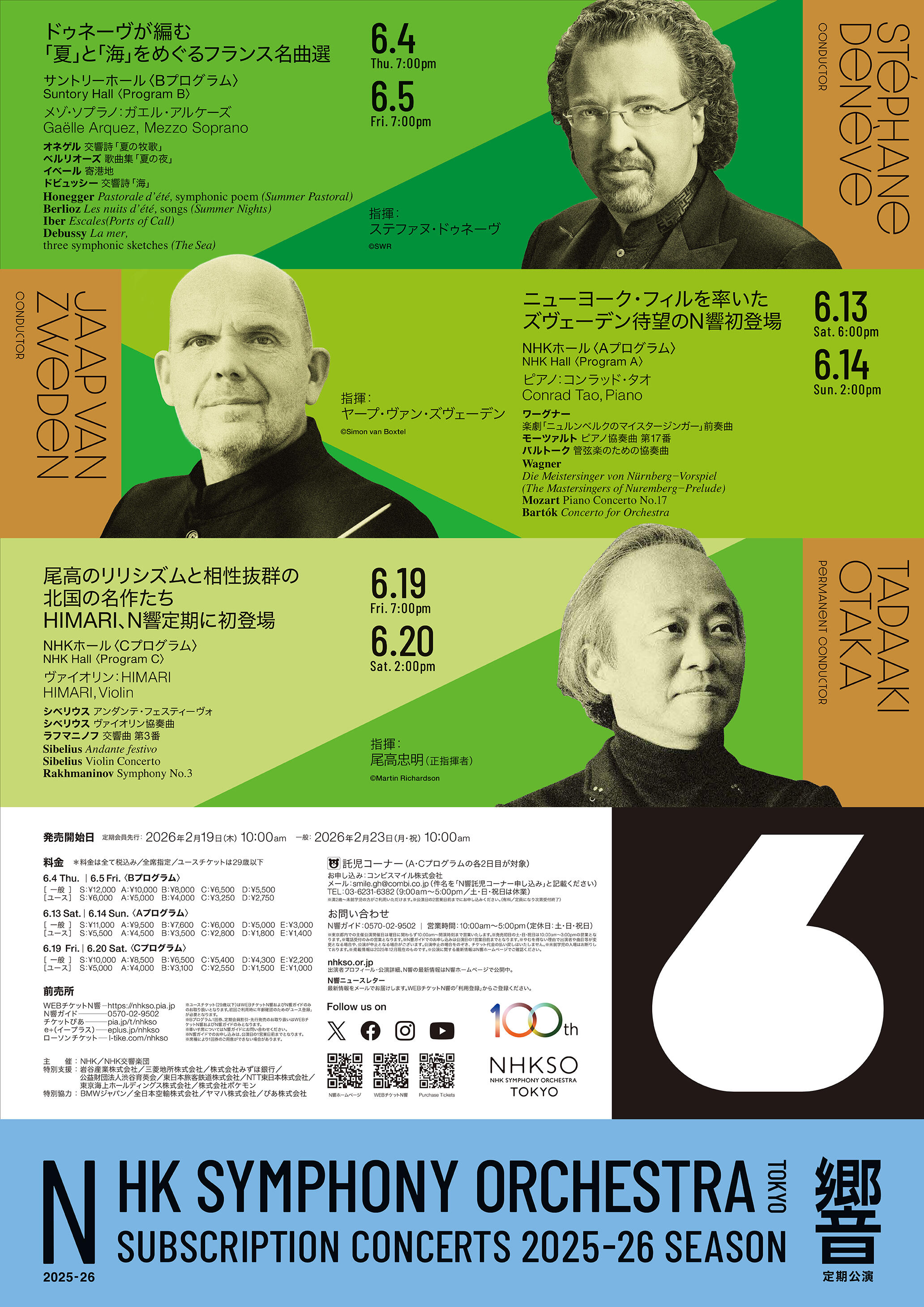 *Subscribers receive a 10% discount (Available at NHKSO WEB Ticket and N-Kyo Guide)